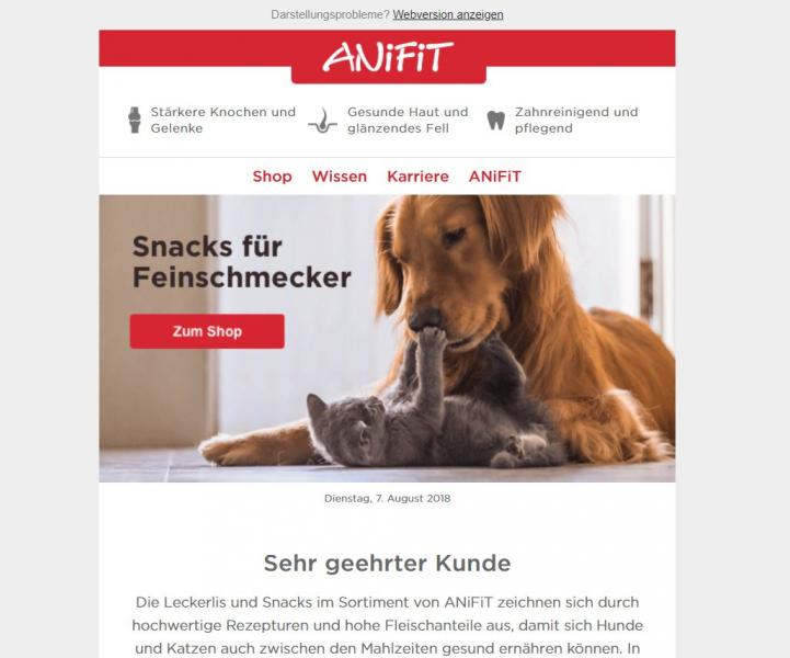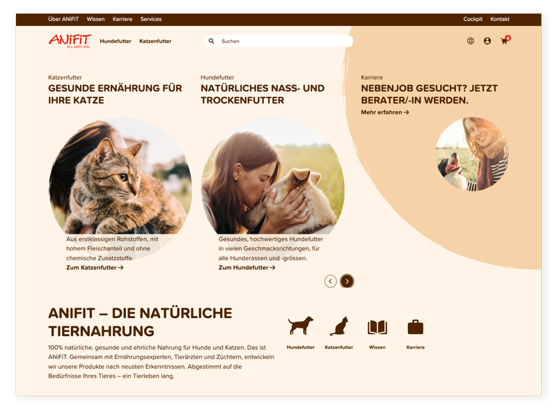 Das Futter soll dazu beitragen, dass Hund und Katze gesund und fit bleiben. Dieser Grundsatz spiegelt sich auch im Firmennamen wider: ANiFiT = Animal Fit.