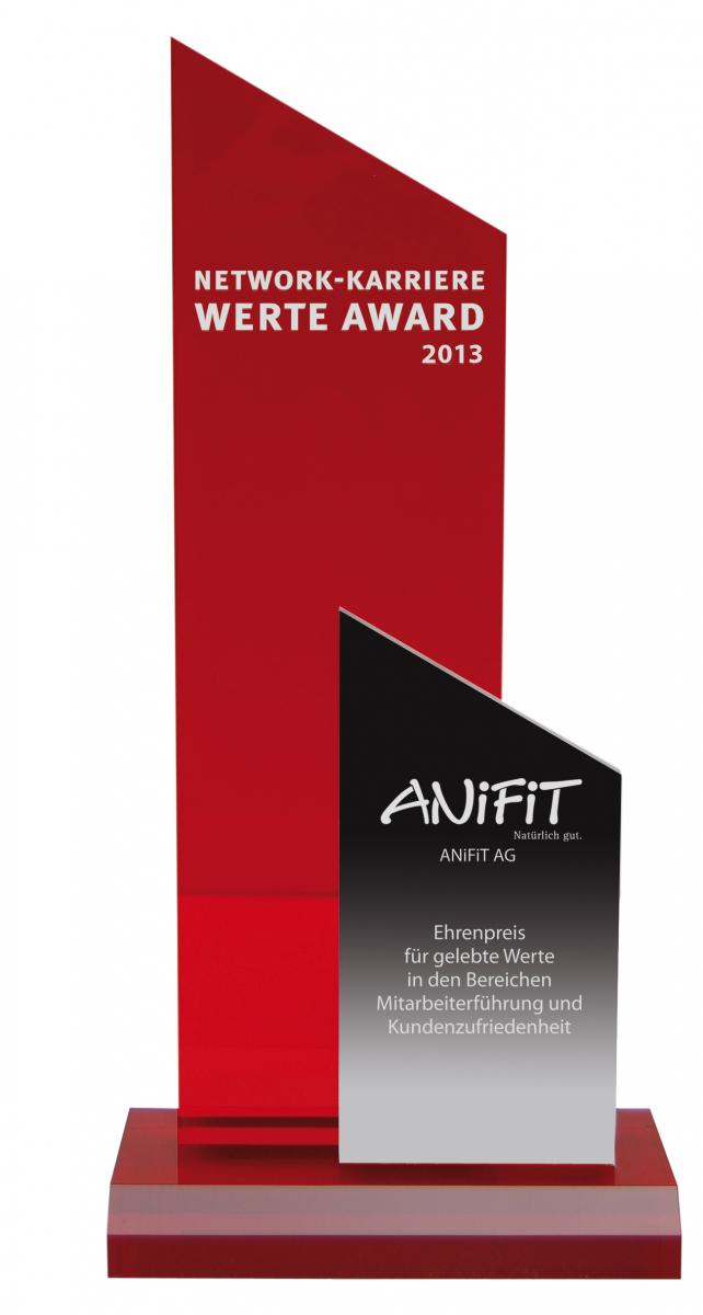 2013 wird ANiFiT Schweiz von Europas grösster Wirtschaftsfachzeitung für den Direktvertrieb, Network-Karriere, mit dem Wertekultur-Award ausgezeichnet. Über 130’000 Leserinnen und Leser nahmen an der Abstimmung teil. Der Ehrenpreis von Network-Karriere geht an ANiFiT für gelebte Werte in den Bereichen Mitarbeiterführung und Kundenzufriedenheit.